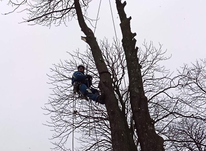 Większość prac wykonuję metodą alpinistyczną przez co wzrasta jakość wykonywanej usługi i umożliwia prace przy drzewach trudno dostępnych, m.in. cmentarze, zabudowa miejska.